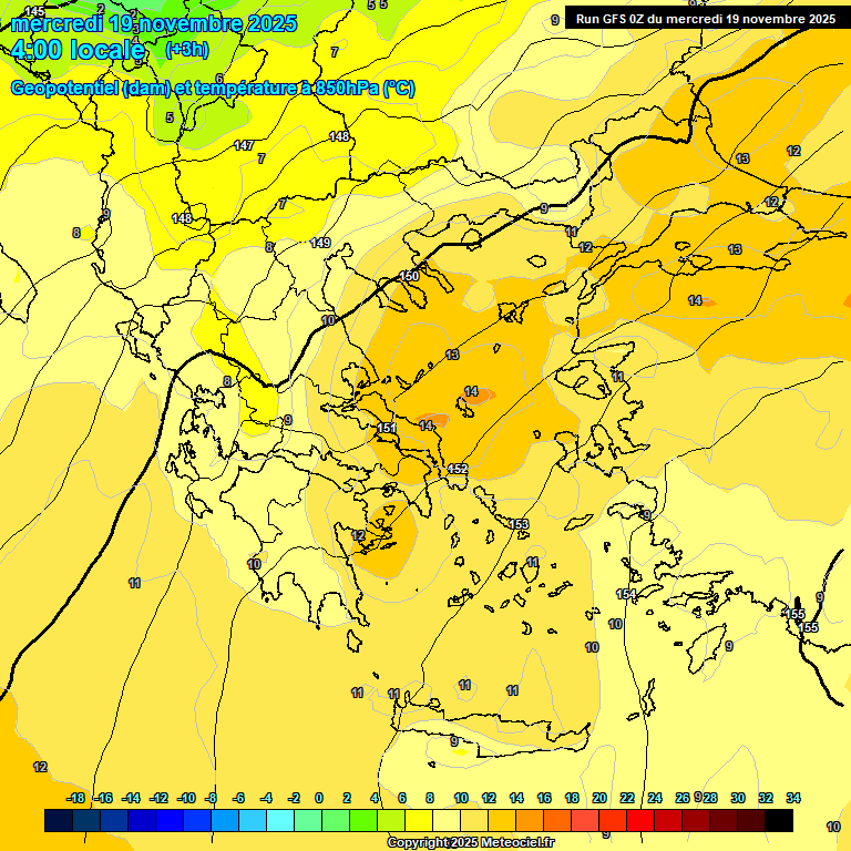 Θερμοκρασία στα 1500μ (Meteociel GFS 10 ημερών)